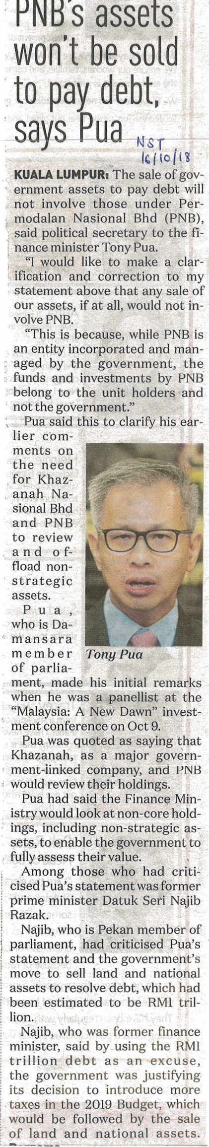 New Straits Times: PNB's Assets Won't Be Sold To Pay Debt, Says Pua |