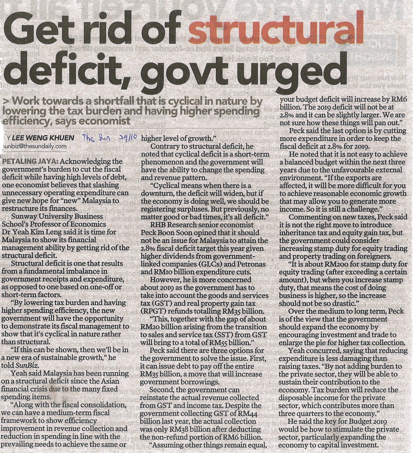 The Sun - Get Rid Of Structural Deficit, Govt Urged |