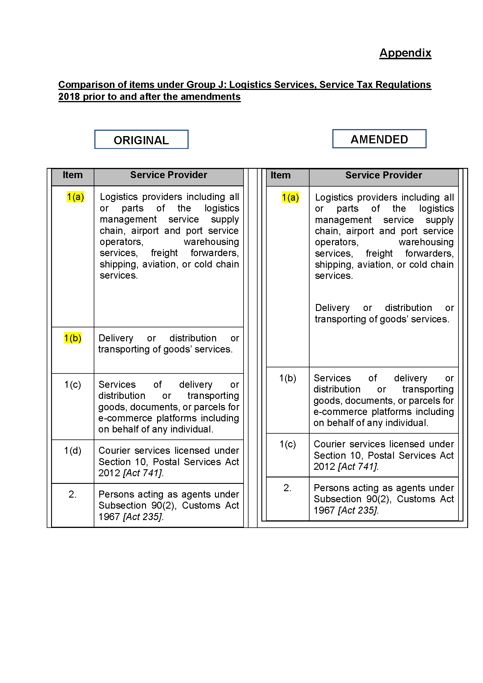 These enhancements are additions to the widening of Service Tax exemption scope for logistics sectors as announced on 11 March 2024.