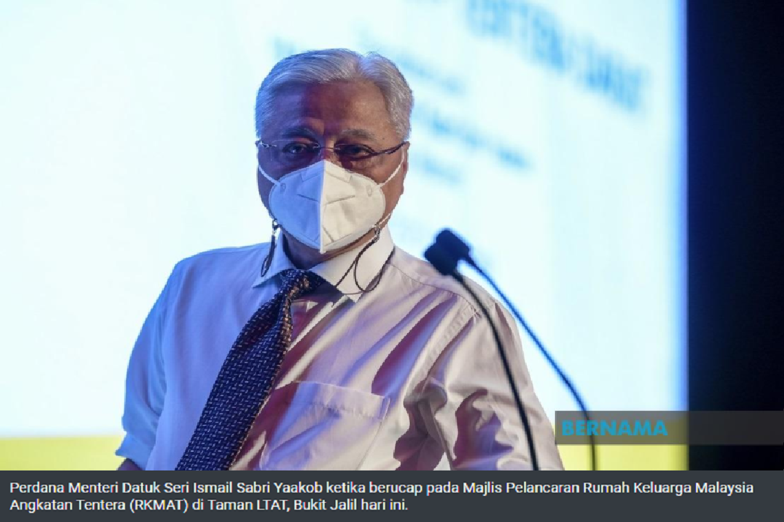 "Oleh itu, kita beri bantuan tunai kepada rakyat untuk bantu mereka teruskan kehidupan, bantuan turut diberi kepada syarikat-syarikat mikro yang terjejas teruk kerana tidak boleh menjalankan perniagaan akibat Perintah Kawalan Pergerakan,” katanya dalam sidang media selepas majlis pelancaran Rumah Keluarga Angkatan Tentera di Bukit Jalil, di sini.