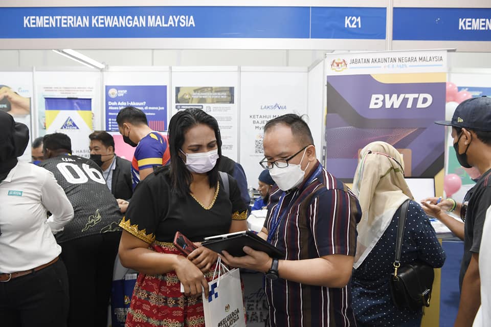 YBhg. Datin Rashidah Mohd Sies, Timbalan Ketua Setiausaha Perbendaharaan (Pengurusan) telah turun padang memantau sambutan yang amat menggalakkan untuk hari ketiga di booth Kementerian Kewangan Malaysia (K21) bersempena Jelajah Aspirasi Keluarga Malaysia Negeri Sarawak.
