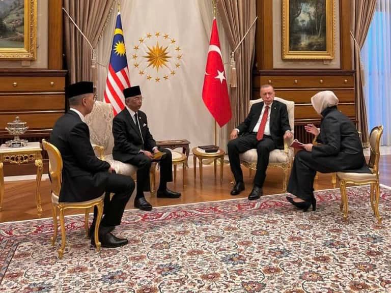 KDYMM Seri Paduka Baginda Yang di-Pertuan Agong telah diberi Sambutan Negara oleh Republik Turkiye sempena lawatan baginda dan disambut oleh TYT Recep Tayyip Erdogan, Presiden Republik Turkiye.