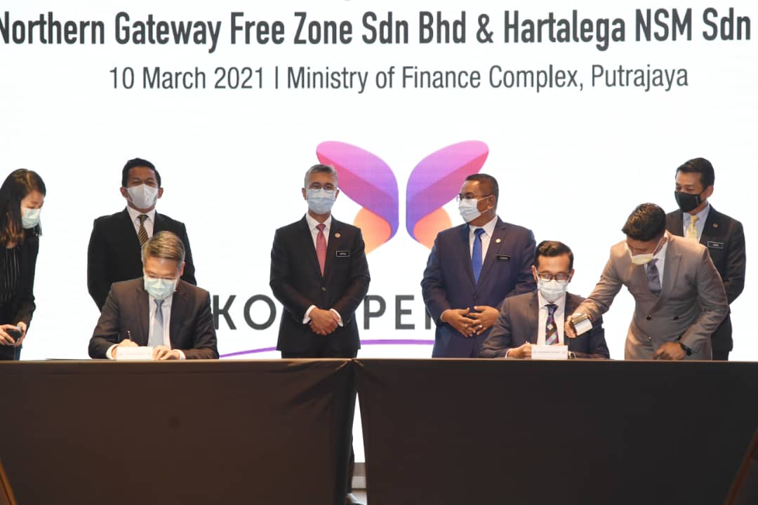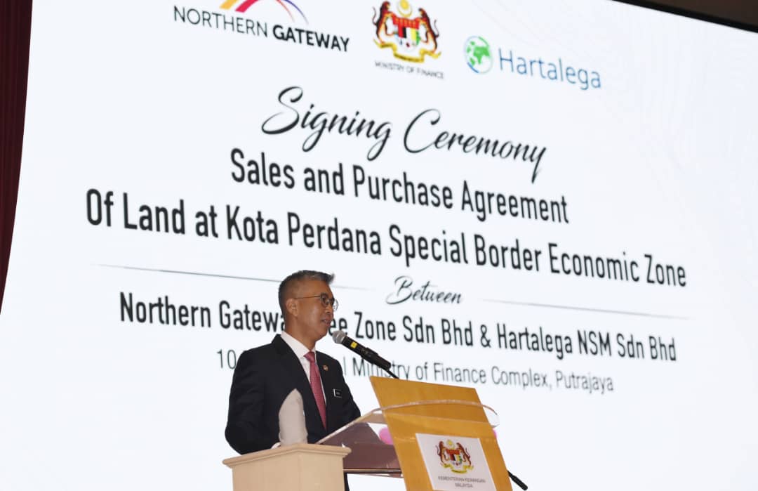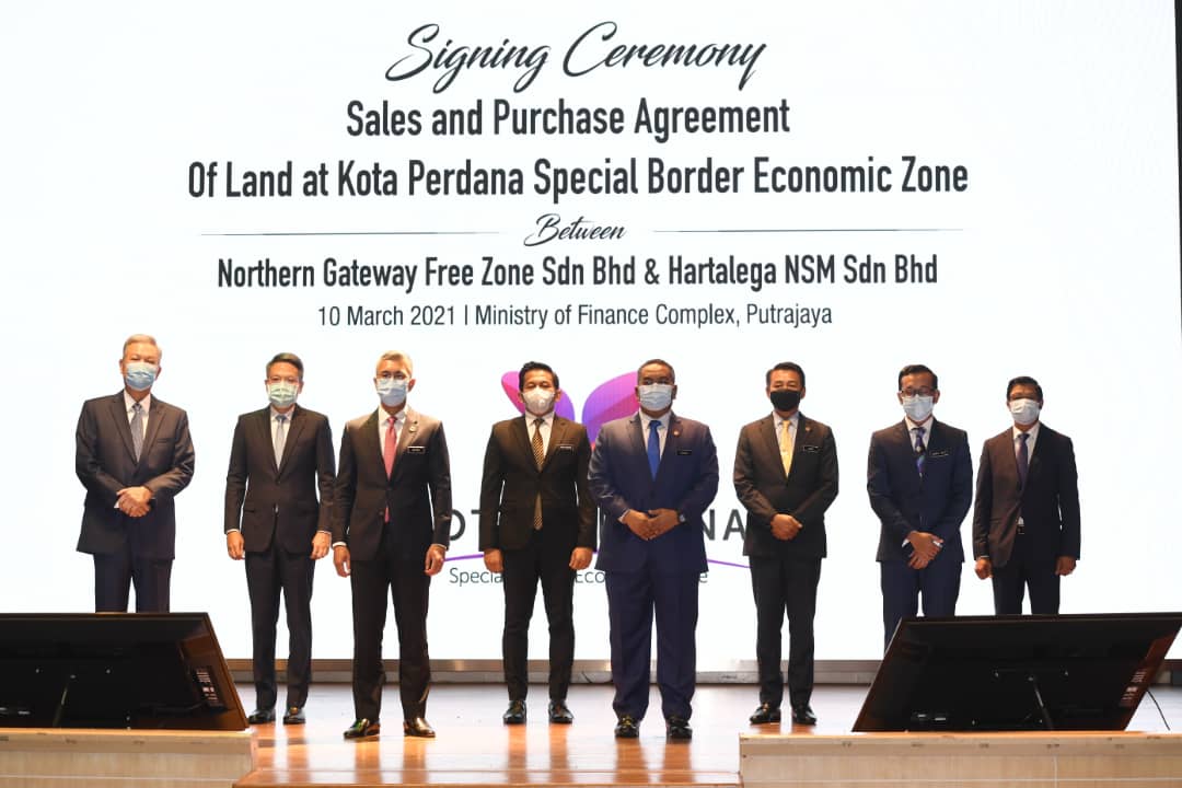 YB Senator Tengku Datuk Seri Utama Zafrul Tengku Abdul Aziz, Menteri Kewangan bersama YAB Tuan Haji Muhammad Sanusi Md Nor, Menteri Besar Kedah telah menyaksikan Majlis Menandatangani Perjanjian Jual-Beli Tanah di Zon Sempadan Ekonomi Khas (SBEZ) Kota Perdana, Bukit Kayu Hitam, Kedah Antara Syarikat Northern Gateway Free Zone Sdn Bhd dan Hartalega NSM Sdn Bhd.