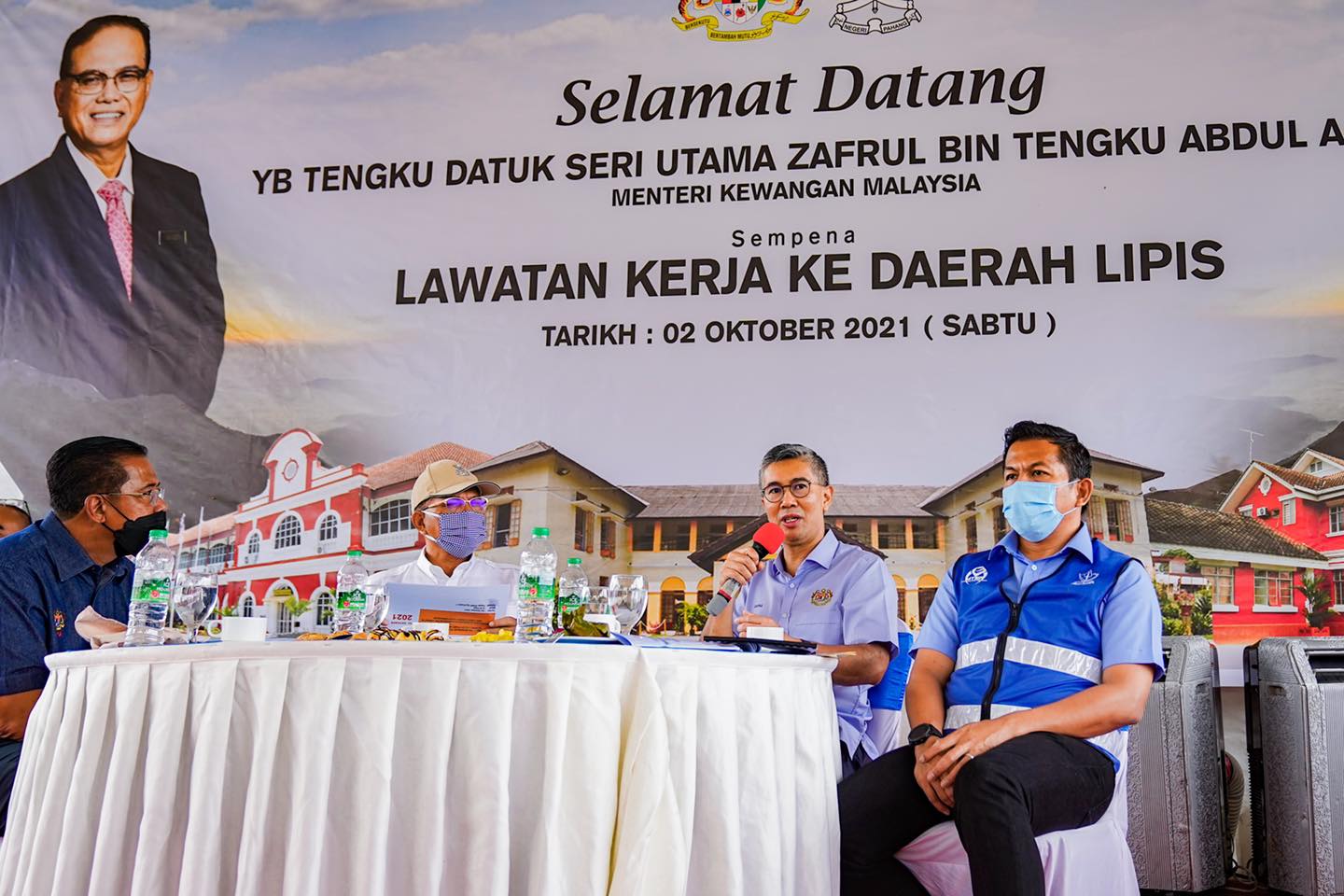 YB Senator Tengku Datuk Seri Utama Zafrul Tengku Abdul Aziz, Menteri Kewangan telah berkesempatan mengadakan sesi jelajah #Bajet2022 di Lipis, Pahang dan beliau amat berbesar hati kerana dapat bersama-sama YAB Menteri Besar Pahang Darul Makmur, Datuk Sri Wan Rosdy Wan Ismail dan turut ditemani oleh Timbalan Menteri Kewangan I, YB Tuan Mohd Shahar Abdullah serta YB Dato’ Sri Abdul Rahman Haji Mohamad, Timbalan Menteri I, Kementerian Pembangunan Luar Bandar.