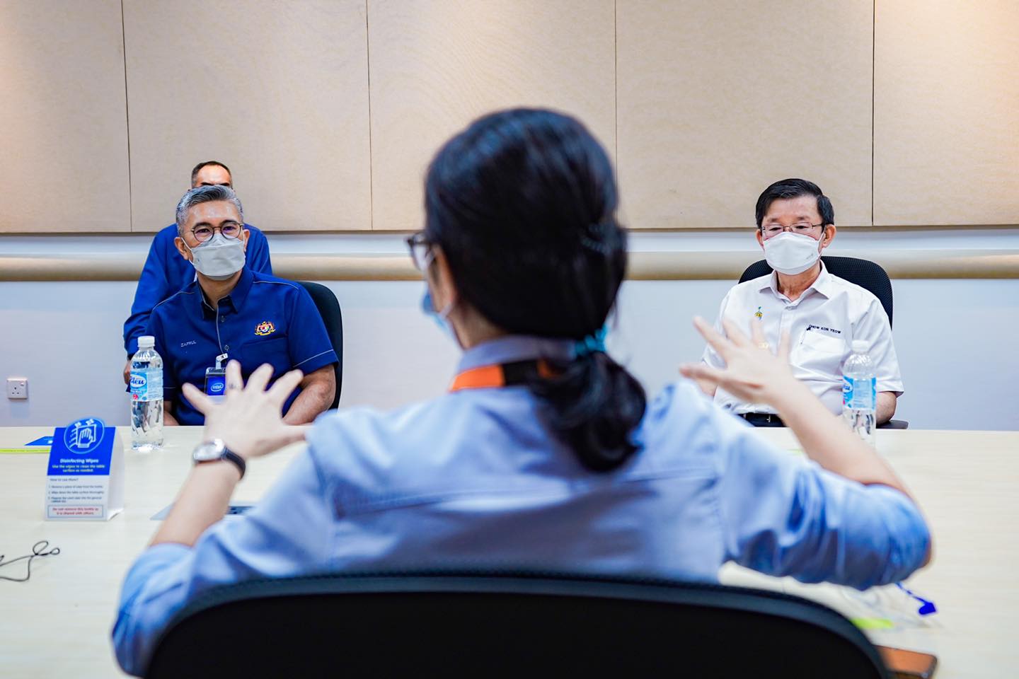 YB Senator Tengku Datuk Seri Utama Zafrul Tengku Abdul Aziz, Menteri Kewangan telah berkesempatan mengadakan sesi jelajah #Bajet2022 ke Pulau Pinang bersama #TeamMOF. Lawatan pertama beliau adalah ke kilang Intel Corporation Malaysia. Turut bersama adalah Ketua Menteri Pulau Pinang, YAB Tuan Chow Kon Yeow dan Ketua Setiausaha Perbendaharaan, Dato’ Asri Hamidon.⠀⠀