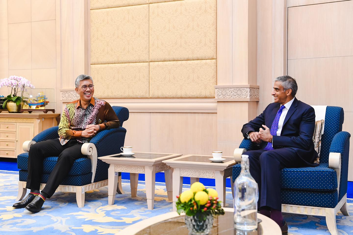 YB Senator Tengku Datuk Seri Utama Zafrul Tengku Abdul Aziz, Menteri Kewangan telah menerima kunjungan rasmi TYT Vanu Gopala Menon, Pesuruhjaya Tinggi Singapura di Kementerian Kewangan (MOF), Putrajaya. ⠀
