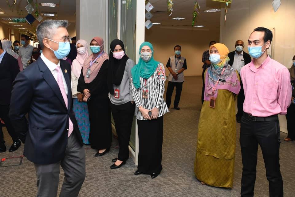 YB Senator Tengku Datuk Seri Utama Zafrul Tengku Abdul Aziz, Menteri Kewangan dan YB Mohd Shahar Abdullah, Timbalan Menteri Kewangan II telah mengadakan sesi lawatan (walkabout) di seluruh pejabat MOF untuk mengucapkan Salam Aidilfitri dan bermaafan bersama warga kerja MOF.