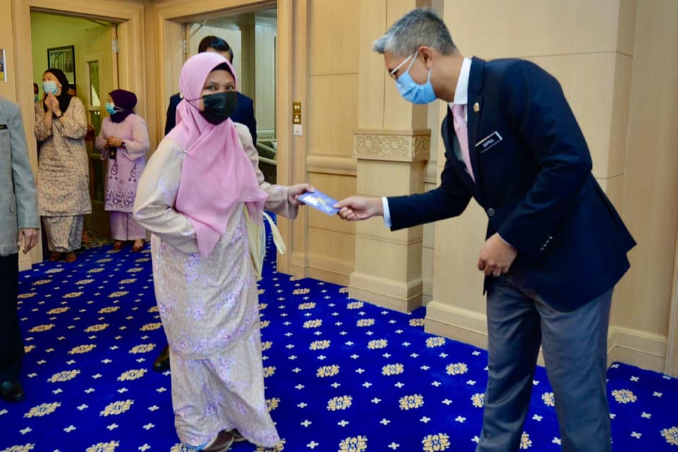 Beliau juga telah menyampaikan sumbangan Aidilfitri kepada #TeamMOF dari golongan OKU dan kurang berkemampuan. Ada yang bertugas sebagai pemandu, polis bantuan, pembantu tadbir dan macam-macam lagi. Walaupun mereka lebih banyak di belakang tabir, namun kerja di MOF tidak mungkin mampu bergerak tanpa mereka.