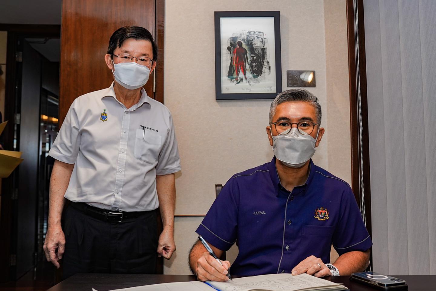 YB Senator Tengku Datuk Seri Utama Zafrul Tengku Abdul Aziz, Menteri Kewangan telah berkesempatan mengadakan sesi libat urus #Bajet2022 bersama YAB Chow Kon Yeow, Ketua Menteri Pulau Pinang bagi mendapatkan input dan membincangkan usahasama Kerajaan Persekutuan dan Negeri bagi memantapkan lagi perjalanan Malaysia keluar dari belenggu pandemik COVID-19 dengan selamat.⠀