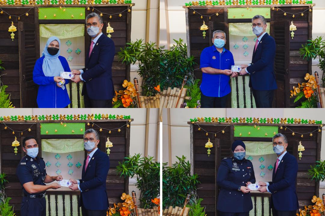 YB Senator Tengku Datuk Seri Utama Zafrul Tengku Abdul Aziz, Menteri Kewangan telah berkesempatan menyampaikan sumbangan kepada Kumpulan Sokongan II #TeamMOF yang terdiri daripada lebih 190 Pembantu Operasi, Pembantu Am, Pemandu dan Pengawal Keselamatan bagi menghargai jasa mereka dan sempena sambutan Aidilfitri yang hampir tiba.