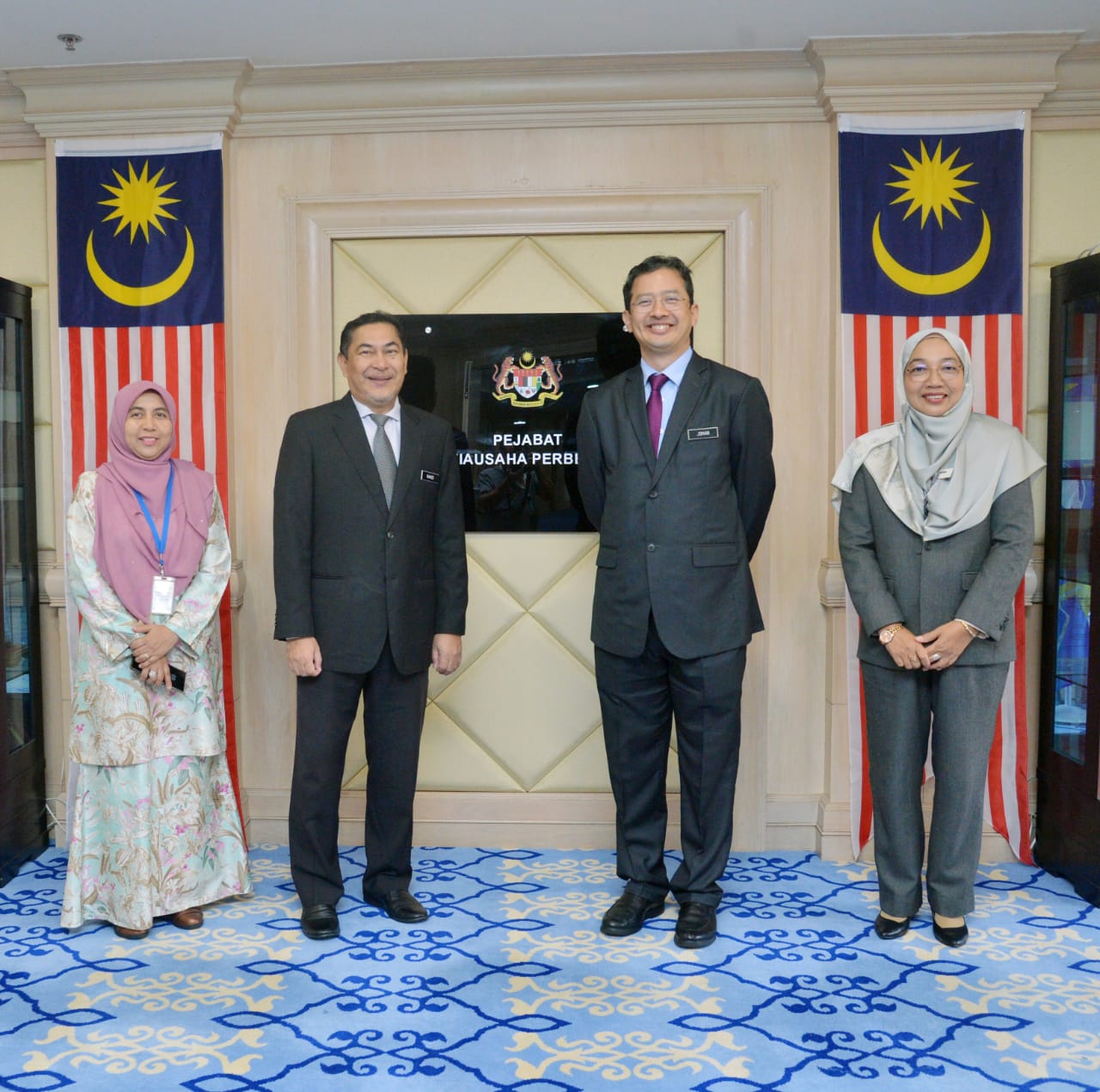Turut hadir sama, YBhg. Datin Paduka Roslinah binti Md Jani, Setiausaha Bahagian Dasar Saraan dan Pengurusan (BDSP) dan Puan Habshah binti Ali, Timbalan Setiausaha BDSP (Pengurusan).