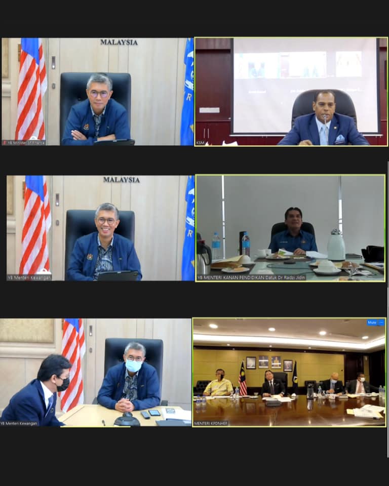 YB Senator Tengku Datuk Seri Utama Zafrul Tengku Abdul Aziz, Menteri Kewangan telah bermesyuarat bersama tiga lagi YB Menteri iaitu YB Datuk Seri M. Saravanan, Menteri Sumber Manusia (KSM), YB Dato Sri Alexander Nanta Linggi, Menteri Perdagangan Dalam Negeri dan Hal Ehwal Pengguna (KPDNHEP) dan YB Datuk Dr. Radzi Jidin, Menteri Kanan Kementerian Pendidikan Malaysia (KPM) untuk memperincikan bantuan di bawah Pelan Pemulihan Negara (PPN).