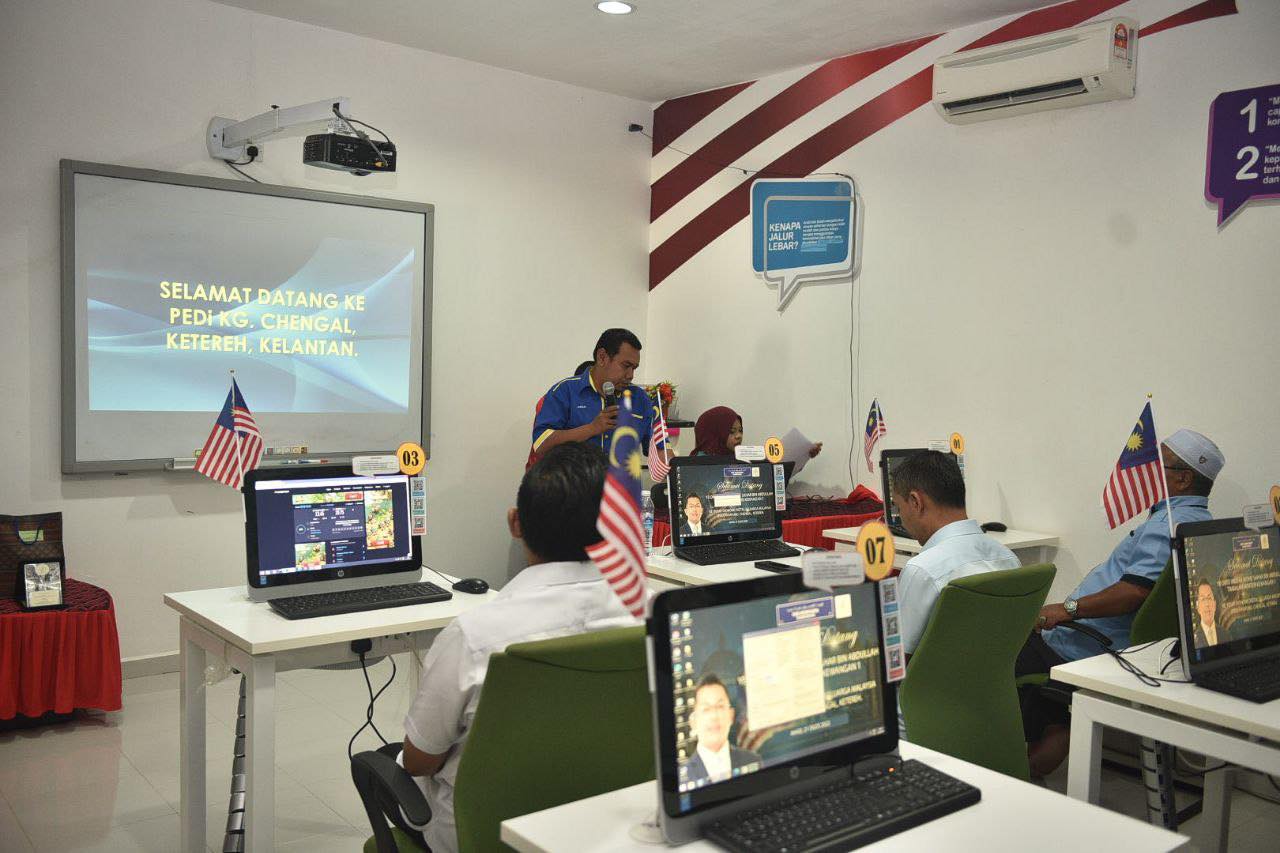 Beliau juga telah berkesempatan singgah di Pusat Internet Komuniti Keluarga Malaysi (PEDi) Kampung Chengal, Ketereh untuk mendengar taklimat dan berjumpa dengan usahawan-usahawan tempatan.