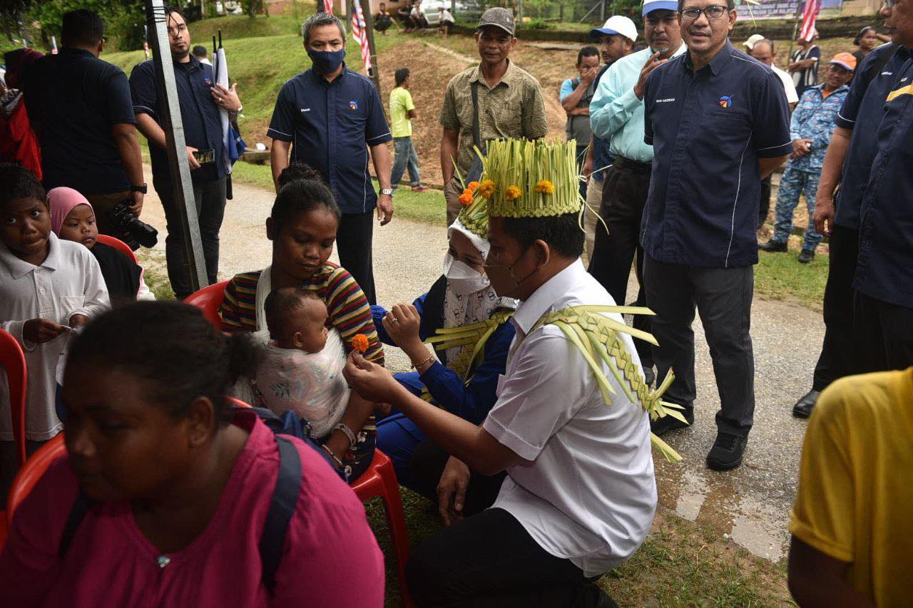 Beliau turut berkesempatan menyampaikan sumbangan kotak makanan Bank Simpanan Nasional Care dan menyampaikan Sijil Tamat Kursus serta Penyerahan Simbolik Business Starter Kit Orang Asli.