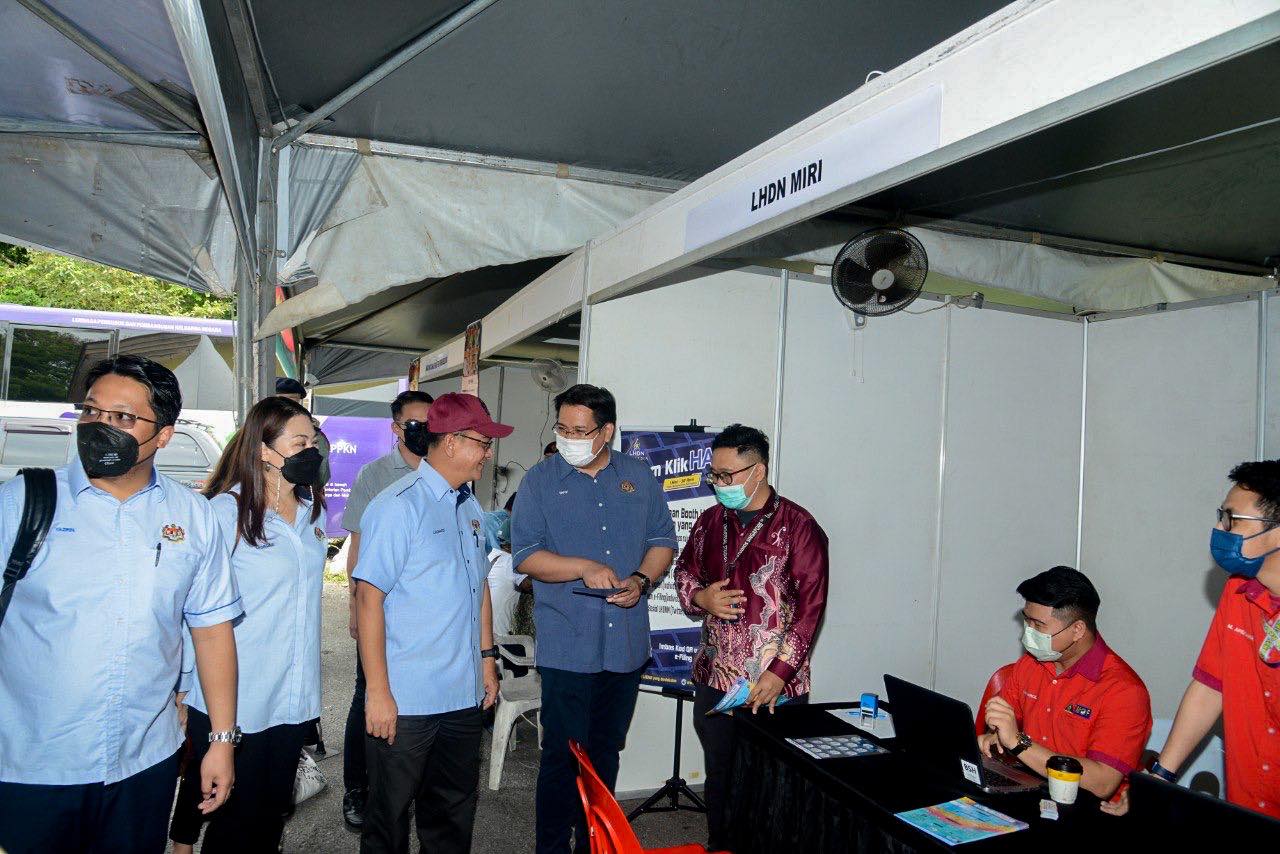 Beliau juga berkesempatan melawat 17 kaunter pameran agensi-agensi Kerajaan yang menyediakan pelbagai informasi dan maklumat serta beramah mesra bersama ketua-ketua kampung serta penduduk setempat.