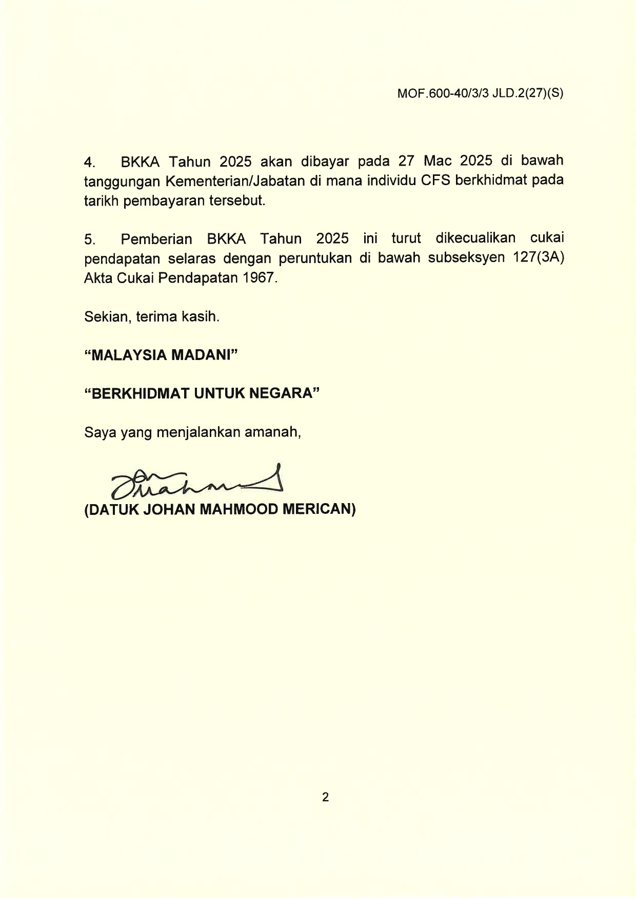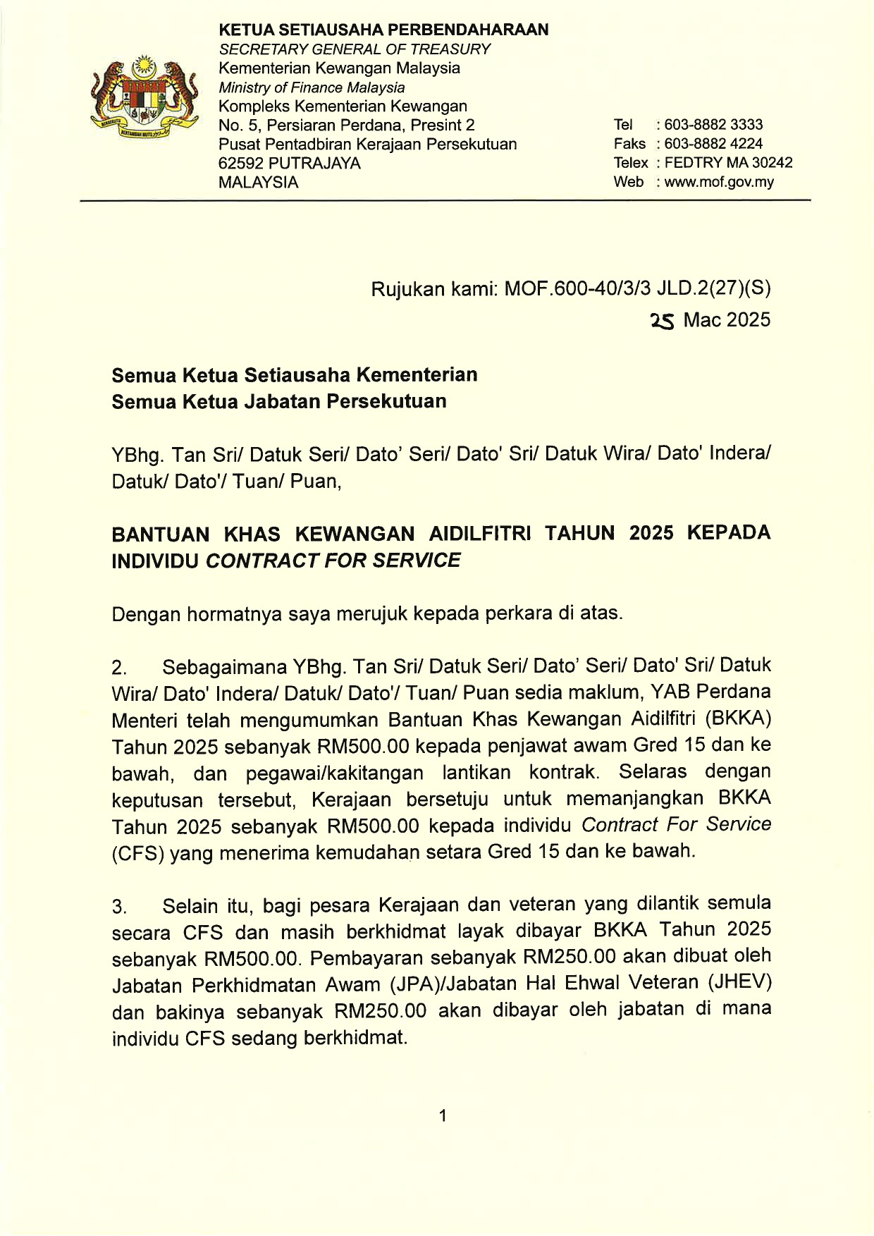 ↓ Muat turun: SURAT EDARAN BANTUAN KHAS KEWANGAN AIDILFITRI TAHUN 2025 KEPADA INDIVIDU CONTRACT FOR SERVICE (CFS)