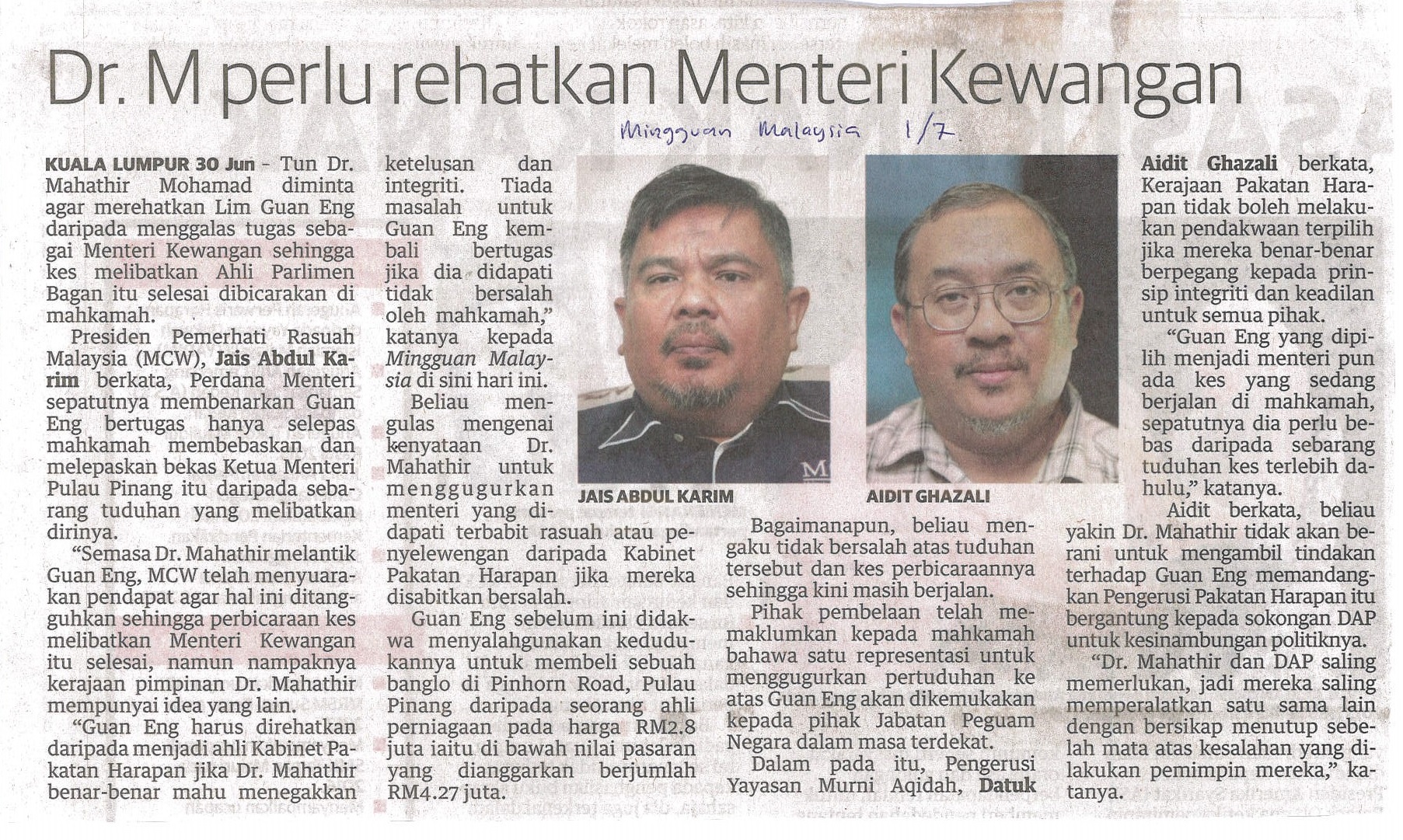 Mingguan Malaysia - Dr.M Perlu Rehatkan Menteri Kewangan |