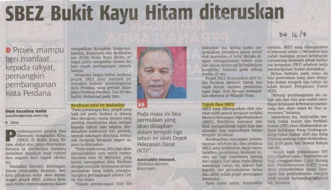 Berita Harian - SBEZ Bukit Kayu Hitam Diteruskan |