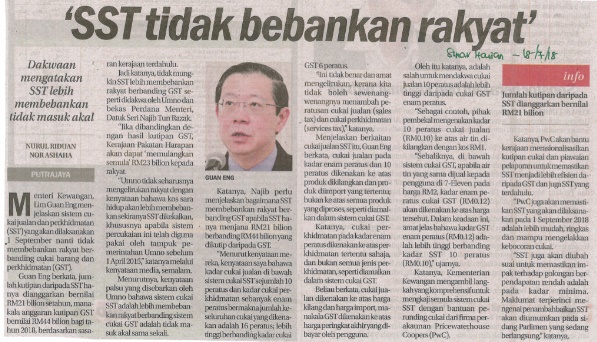 Sinar Harian - 'SST Tidak Bebankan Rakyat' |