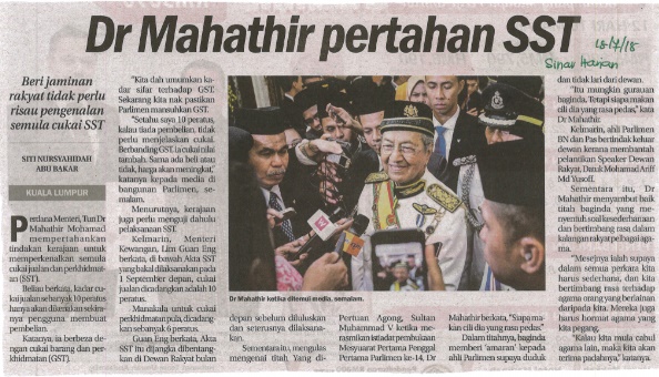 Sinar Harian - Dr Mahathir Pertahan SST |