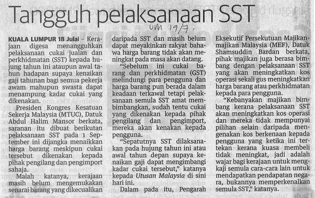 Utusan Malaysia - Tangguh Pelaksanaan SST |