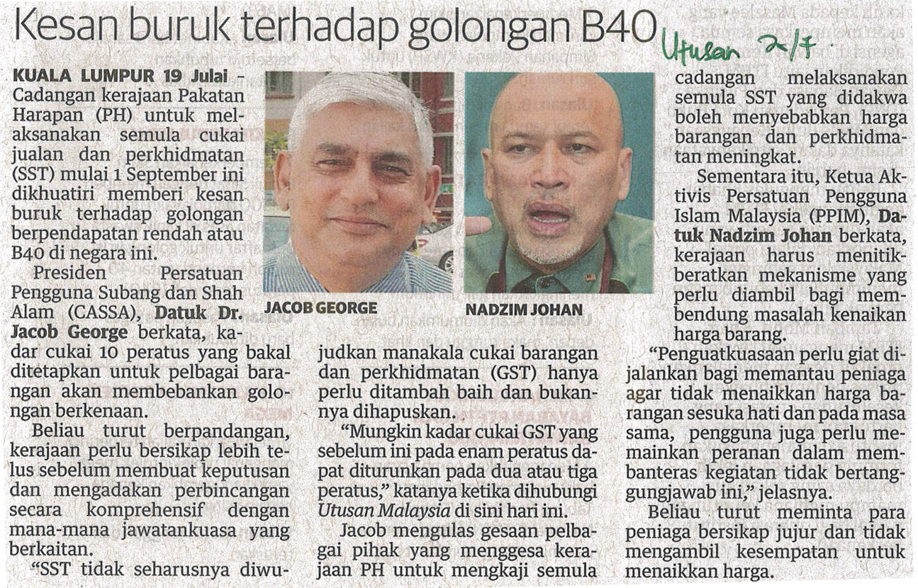 Utusan Malaysia - Kesan Buruk Terhadap Golongan B40