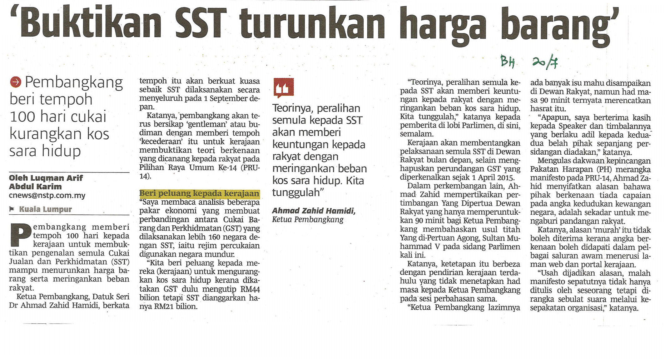 Berita Harian - Buktikan SST Turunkan Harga Barang