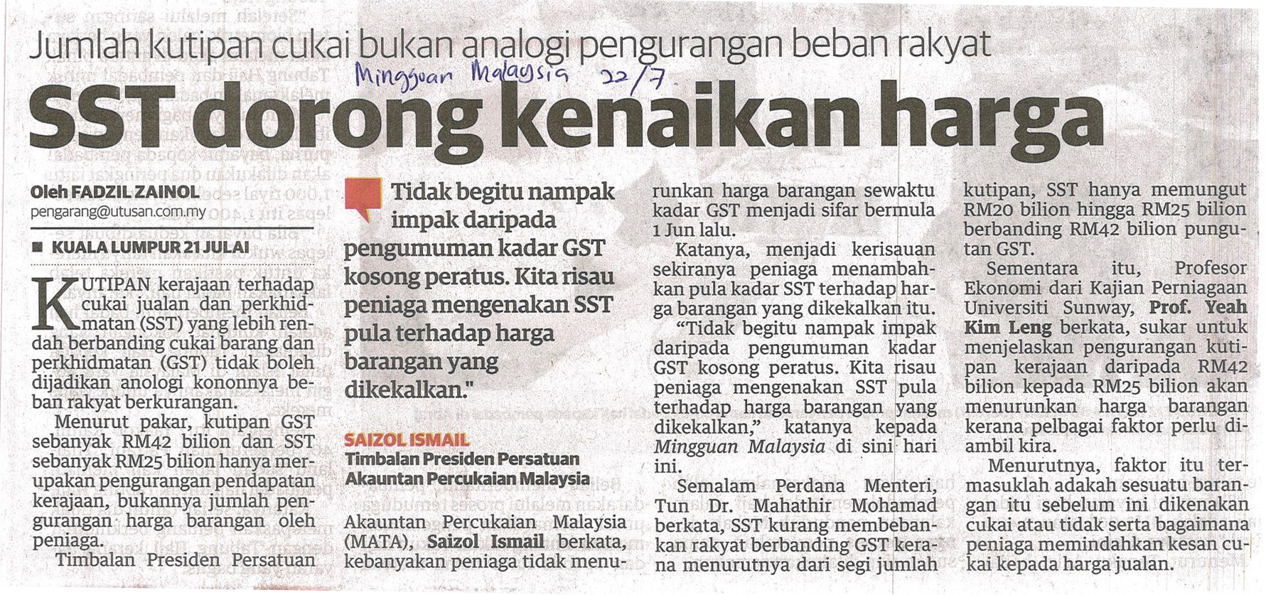 Sinar Harian - Isu GST & SST: Pengguna Sakit Kepala