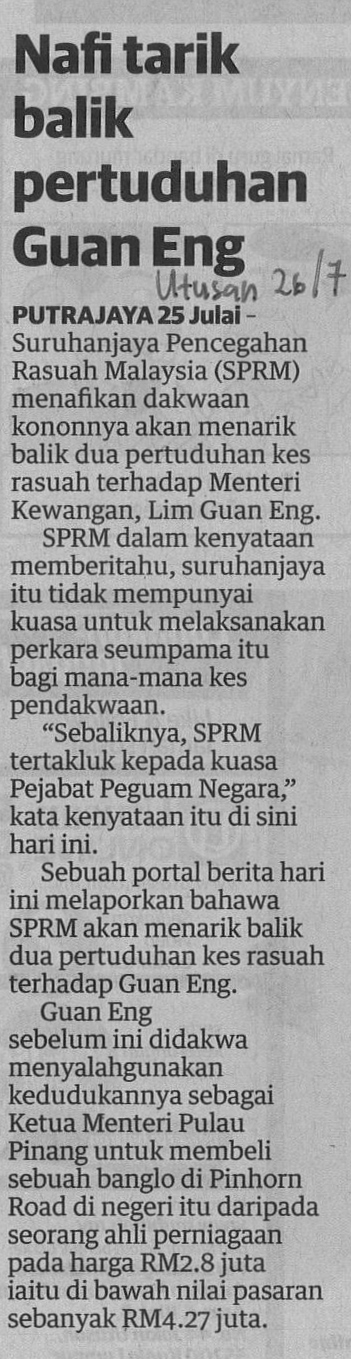 Utusan Malaysia - Nafi Tarik Balik Pertuduhan Guan Eng