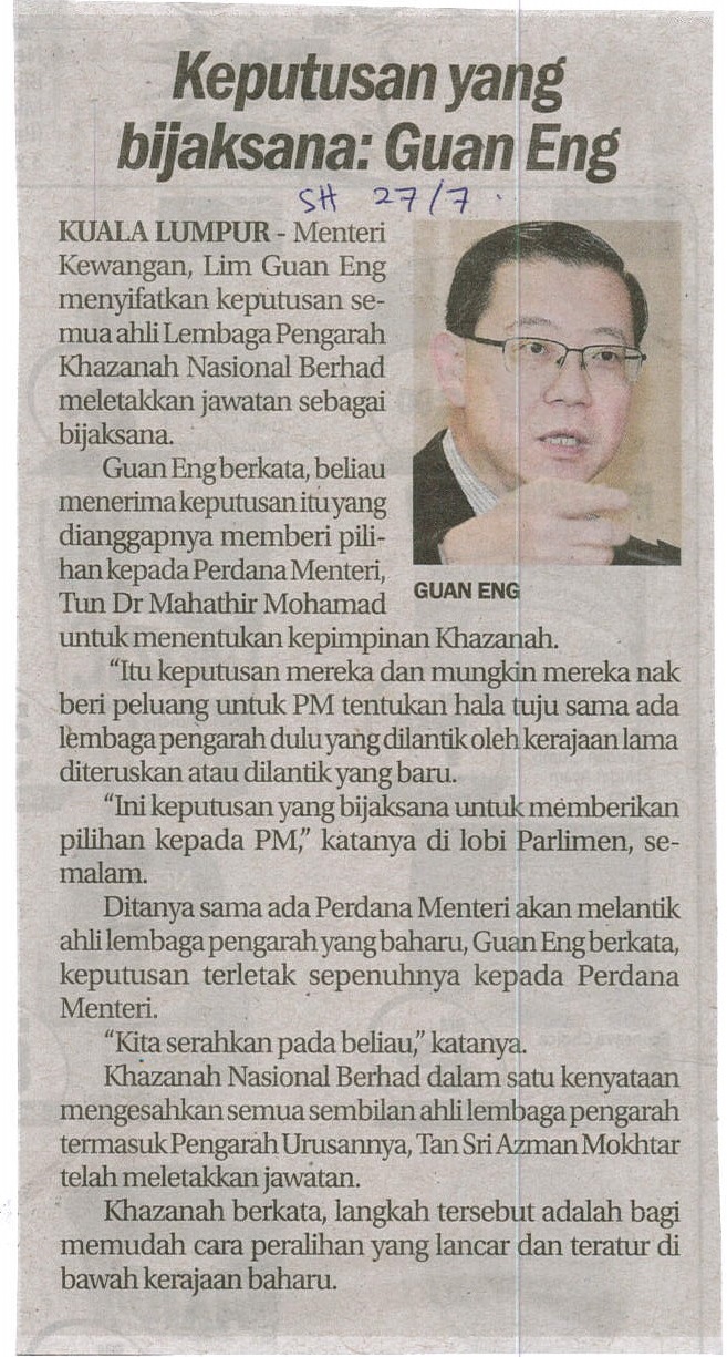 Berita Harian - PM Tentukan Hala Tuju Khazanah : Guan Eng