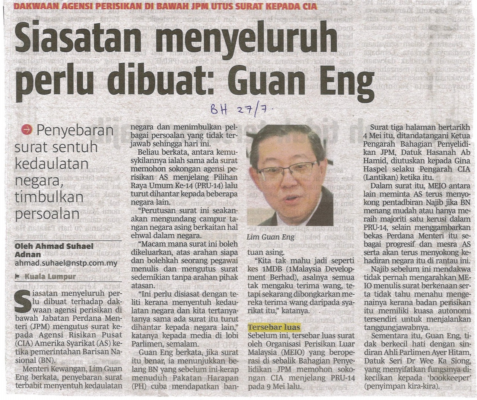 Berita Harian - Siasatan Menyeluruh Perlu Dibuat : Guan Eng