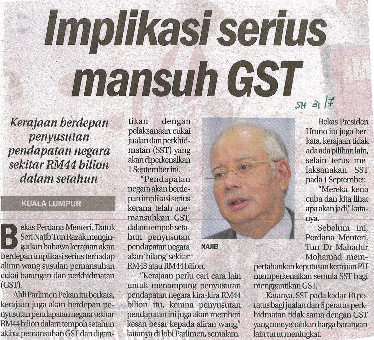 Berita Harian - Kerajaan Perkenal Semula SST 1 September |