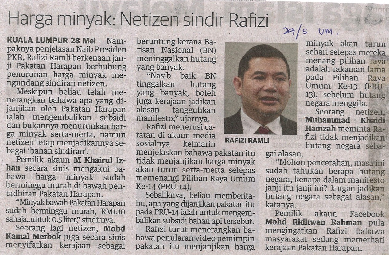 Utusan Malaysia - Harga Minyak : Netizen Sindir Rafizi