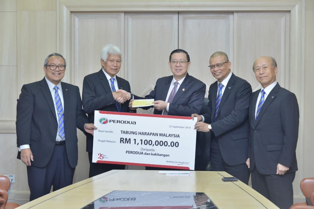 25 September 2018-YB Tuan Lim Guan Eng, Menteri Kewangan Malaysia menerima kunjungan hormat daripada Ketua Pegawai Eksekutif Perodua, YBhg. Datuk Dr Aminar Rashid Salleh di Pejabat Menteri Kewangan untuk menyerahkan cek berjumlah RM1,100,000.00 untuk Tabung Harapan Malaysia.