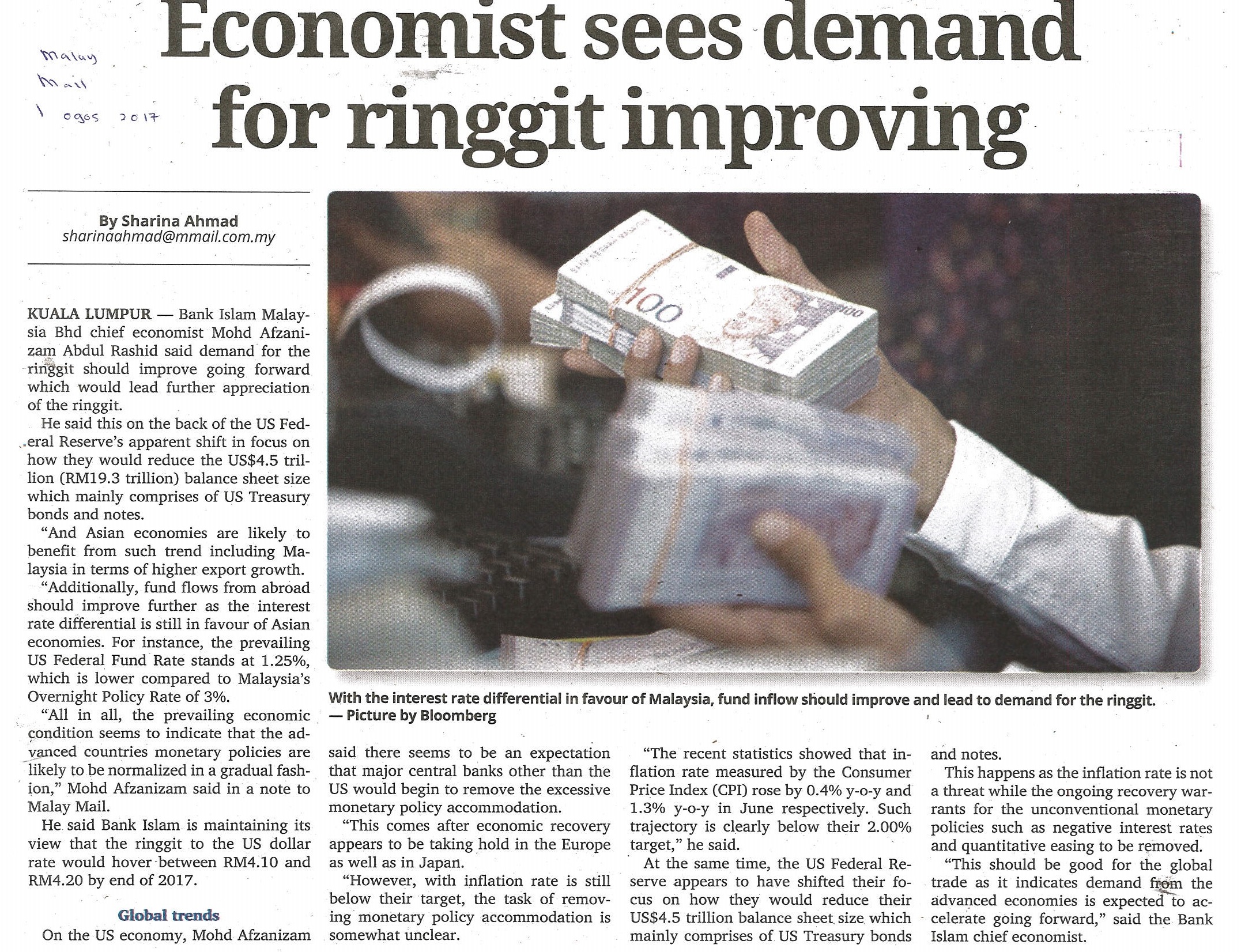 Malay Mail - Economist Sees Demand For Ringgit Improving |