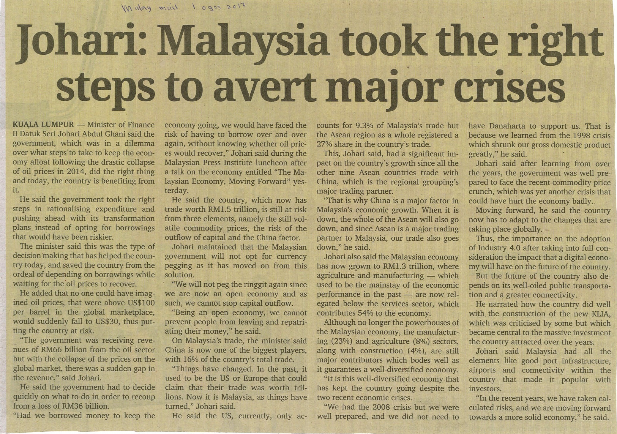Malay Mail - Johari : Malaysia Took The Right Steps To Avert Major Crises |