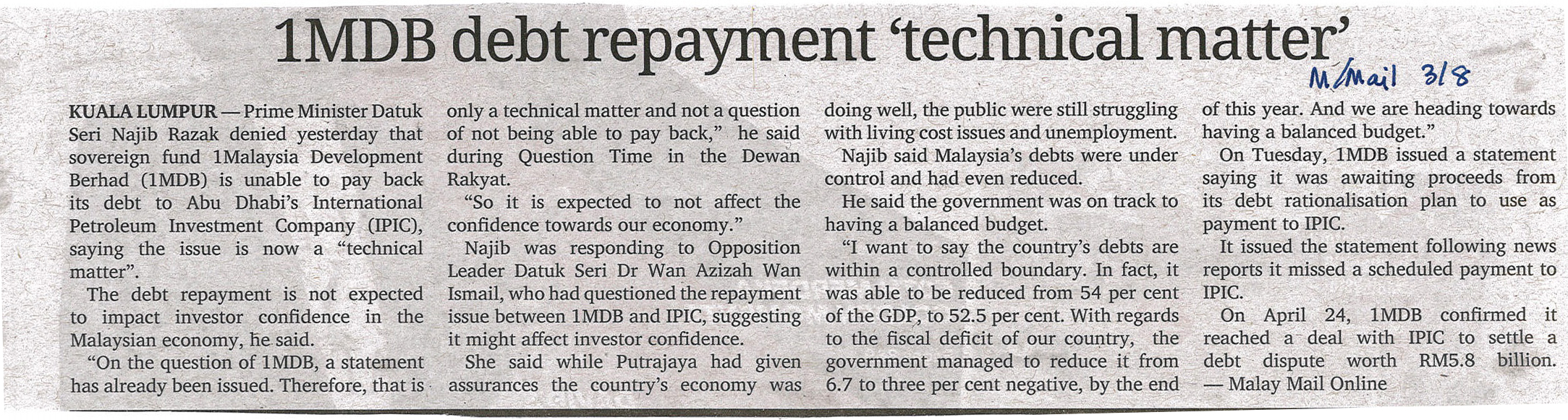 Malay Mail - 1MDB Debt Repayment 'Technical Matter' |
