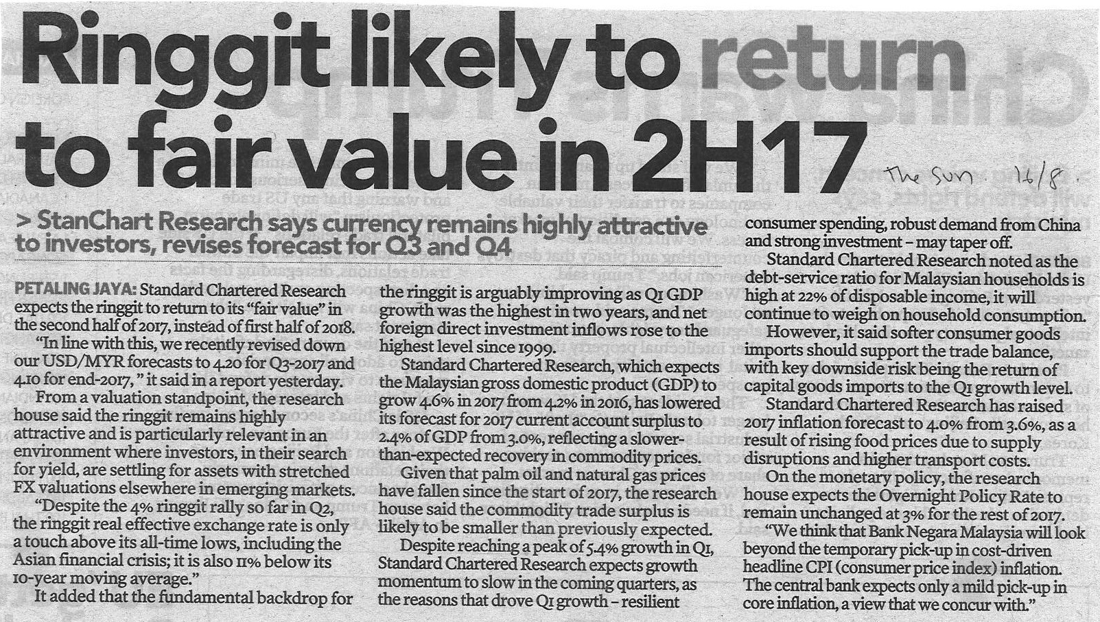 The Sun - Ringgit Likely To Return To Fair Value In 2H17 |