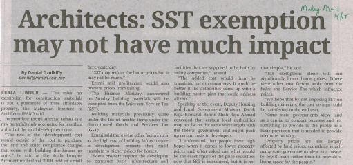 Malay Mail - Architects: SST Exemption May Not Have Much Impact |