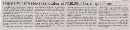 Finance Ministry Seeks Reallocation Of RM9.29bil Fiscal Expenditure |