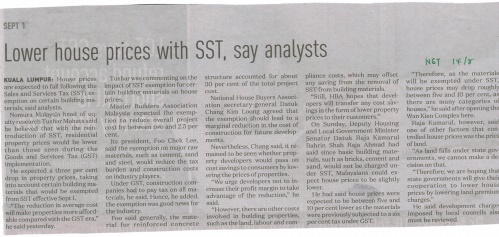 New Straits Times - Lower House Price With SST, Says Analysts |