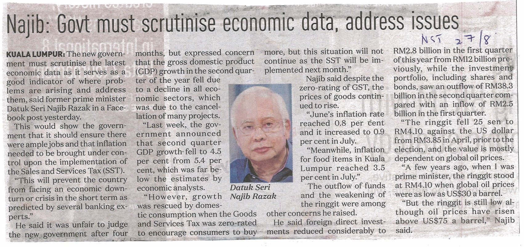 New Straits Times - Najib: Govt Must Scrutinise Economic Data, Address Issues