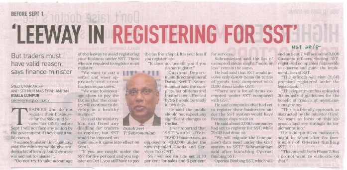 New Straits Times - Leeway in Registering For SST