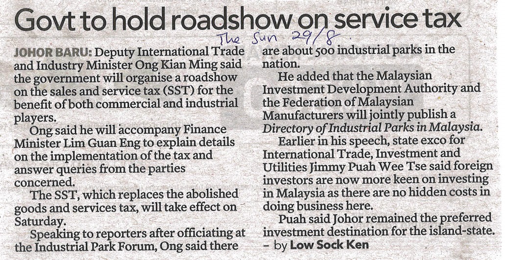 The Sun - Govt To Hold Roadshow On Service Tax