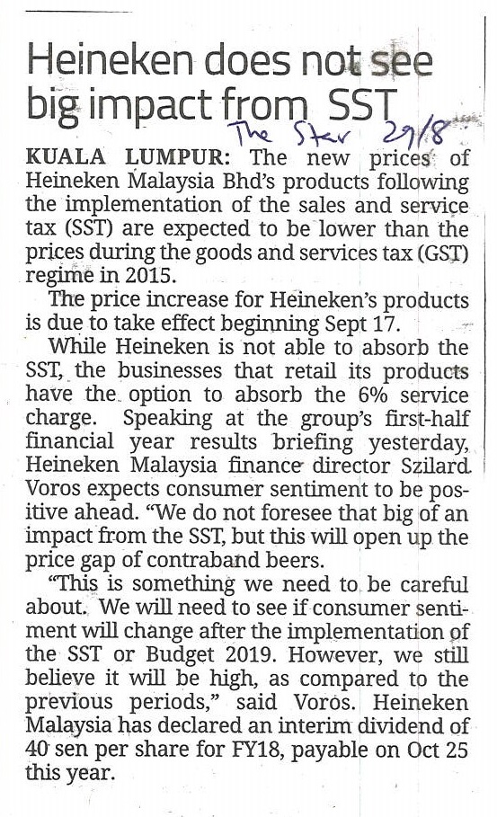 The Star - Heineken Does Not See Big Impact From SST