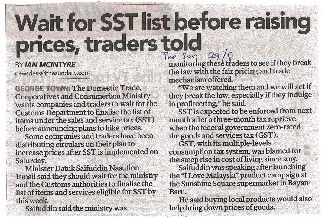 The Sun - Wait For SST List Before Raising Prices, Traders Told