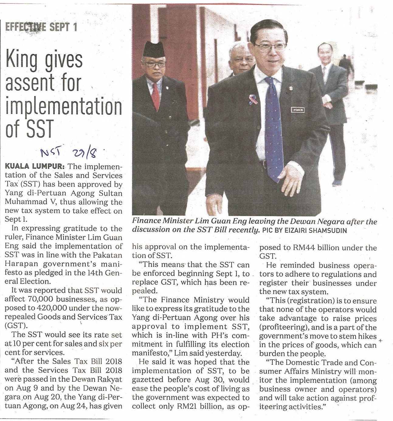 New Straits Times - King Give Assent For Implementation Of SST