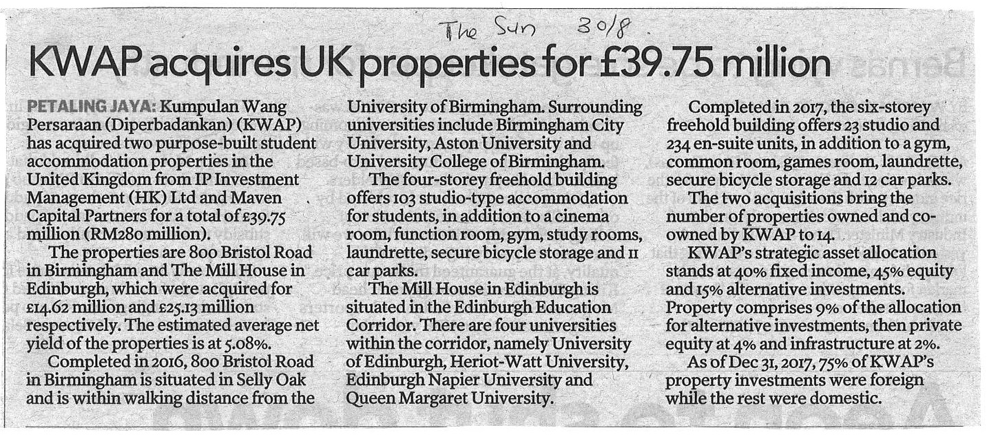 KWAP Acquires UK Properties For £39.75 Million
