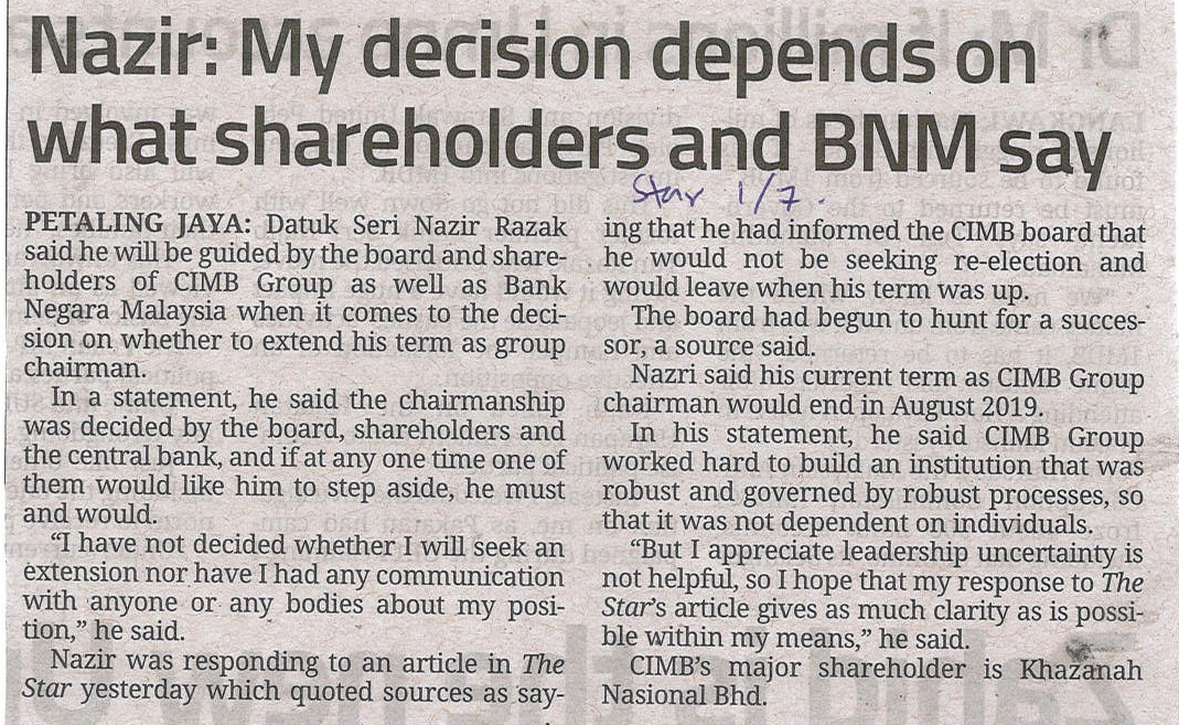 The Star - My Decision Depends On What Shareholders And BNM Says |