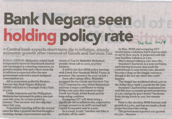 The Sun - Bank Negara Seen Holding Policy Rate |